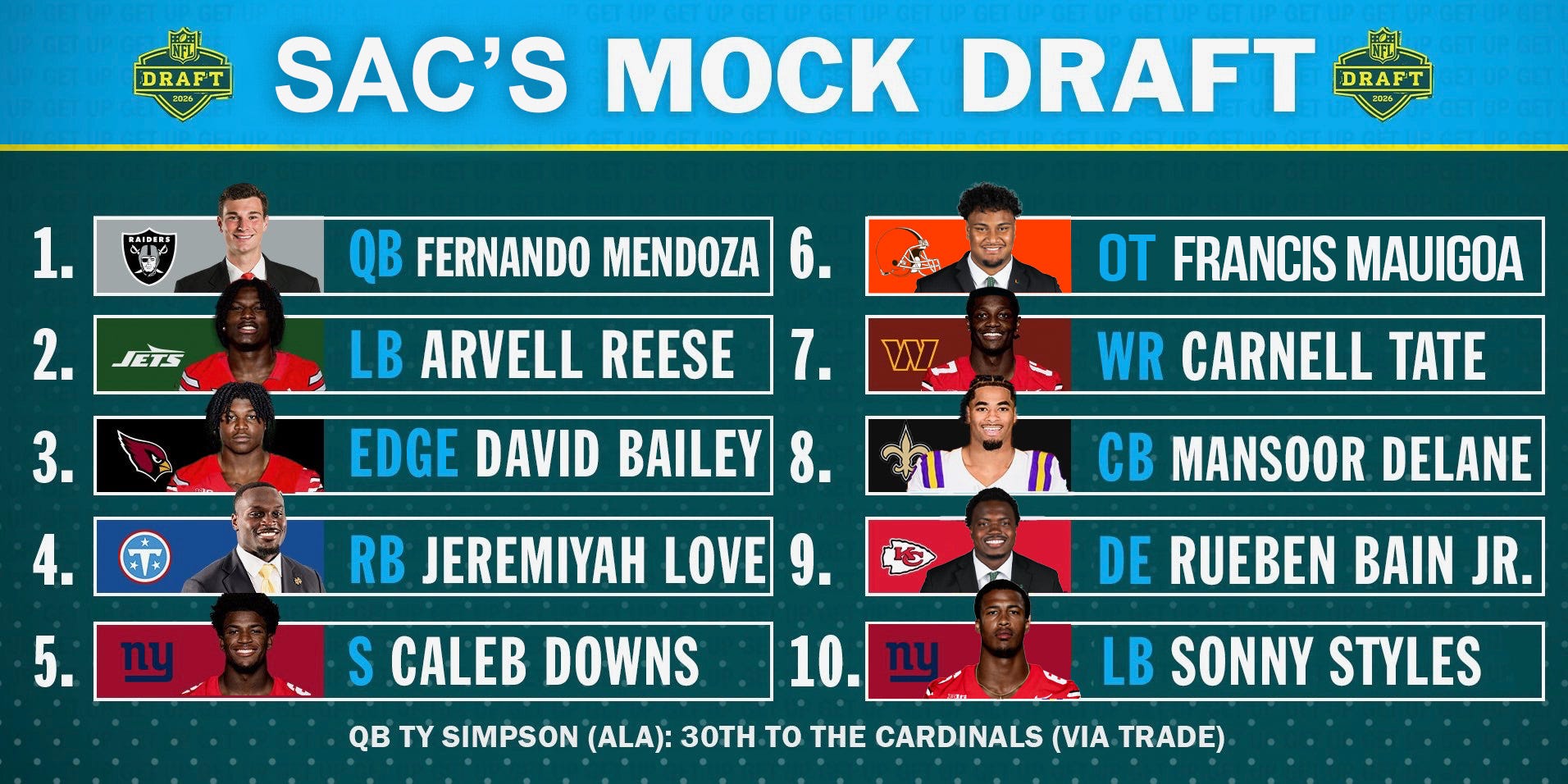 MOCK DRAFT: S.A.C. on the Clock